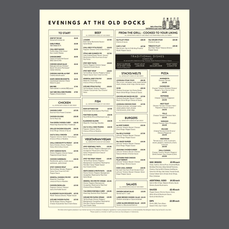 A4 Double Sided Menus